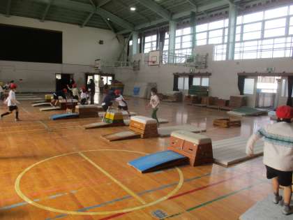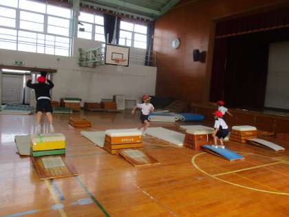 今日は各クラスでとびのったり,とびおりたり,またいだりする練習をしました。何回も練習をして,開脚飛びにつなげていきたいと思います。