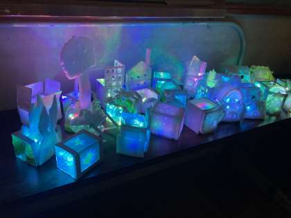 赤色や黄色,青や緑と,いろいろな色に変化する作品を見て,子どもたちからは歓声が上がりました(*´▽`*)