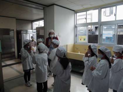 中間休み,給食室の前を通ると,炒めた玉ねぎのいい香りが・・・。