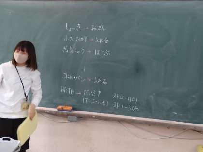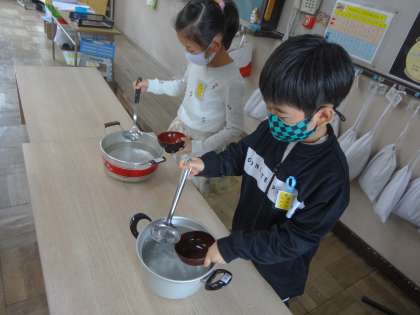 汁物は,子どもたちは入れませんが難易度が高いので,水で練習しました。