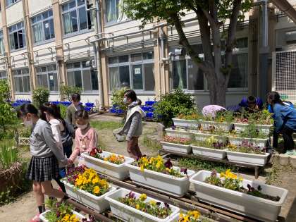 理科の学習で中庭や運動場に出て生き物探しをしました。