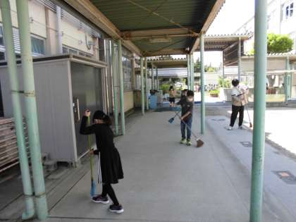 教室だけでなく,中庭や体育館周りなどを一生懸命掃除をする姿が見られます。