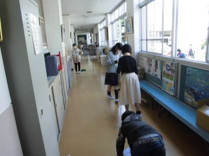 職員室の廊下を見ると,5年生が一生懸命掃除をしていました。