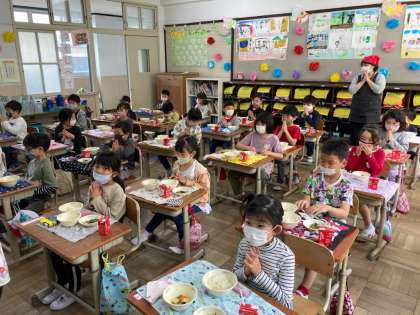 中間休みに給食室の前を通ると,おいしそうなにおいがしてきます。