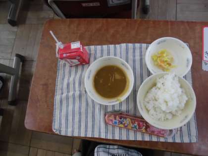 でした。食缶を開けると,カレーのスパイスの食欲を誘う香りが。