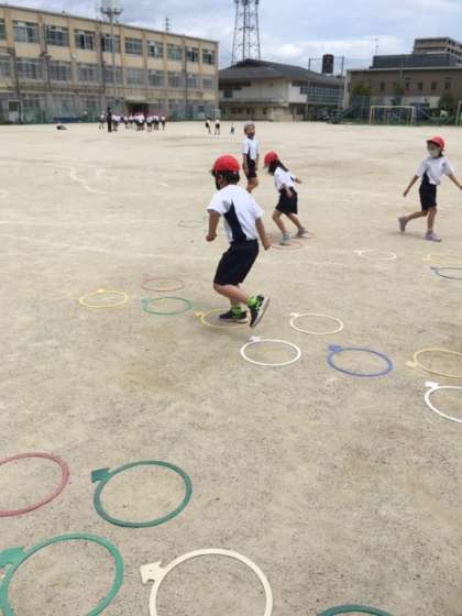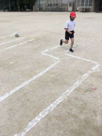 立ち幅跳び・川飛び・ケンケンパーに分かれて活動しました。