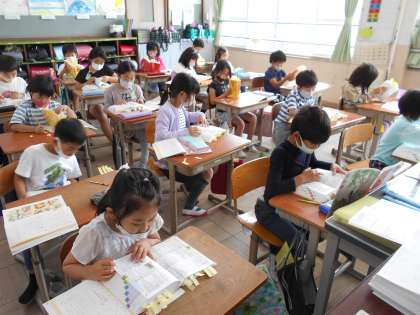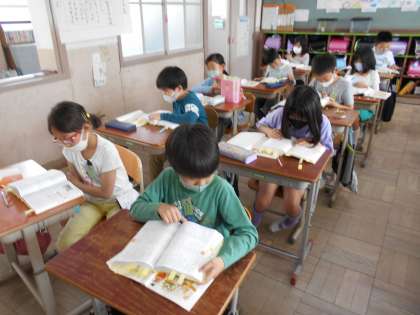 調べた言葉には,付箋を貼り,たくさん調べられるように頑張っています。