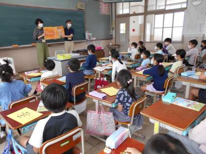 オウムのお話で声を変えて読んでもらい,その後,みんなも一緒に読みました。
