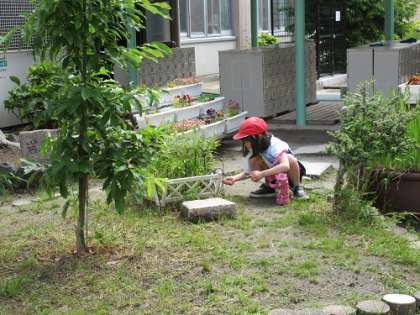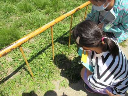 理科の「しぜんのかんさつ」で,虫眼鏡を使って植物や昆虫を観察しました。