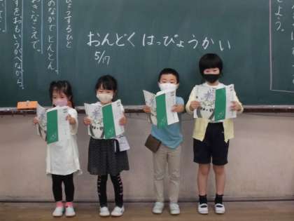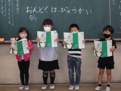 今日は,最後の「はなのみち」の授業で,音読発表会をしました。入学して初めての音読発表会で,ドキドキの子ども達でした。(マスク越しではありますが)大きな声で,姿勢よく,気持ちを込めてをめあてに読みました。