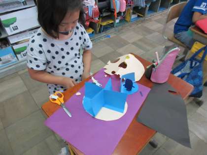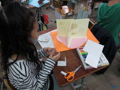 今日の図工の「くるくるランド」の時間に,まわる仕組みを使って作品作りを始めました。「イルカショー」や「水族館」「メリーゴーランド」などテーマをもって作品を作っていました。どんな作品に仕上がるのか楽しみです。