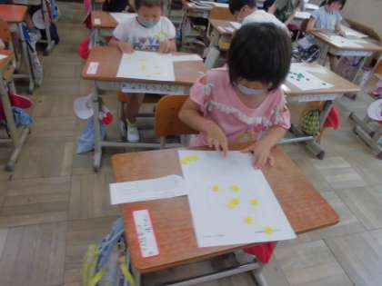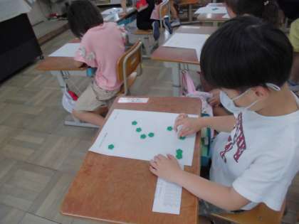 10はいくつといくつに分けられるかを『おはじき入れ』をして考えました。