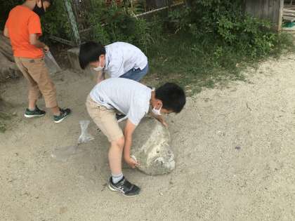 中には、とっておきの石!!と言って、巨大な石を持ち帰ろうとする児童も…