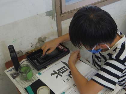硯に向かって心を落ち着かせながら黙々と墨をする姿・・・。