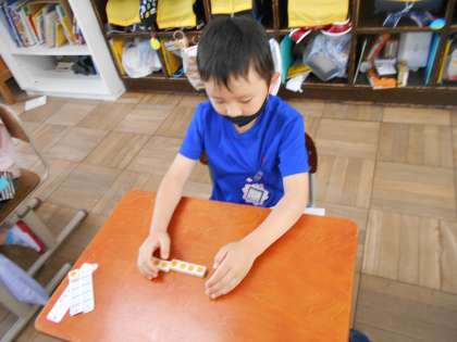 今日は,あわせていくつになるかを数図ブロックを使って考えました。