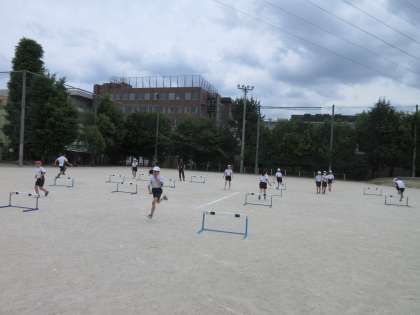 体育科ではリレーに続き,ハードル走に取り組んでいます。