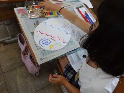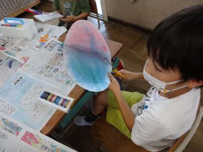 クレパスは絵の具を弾く性質は全体で共有しました。