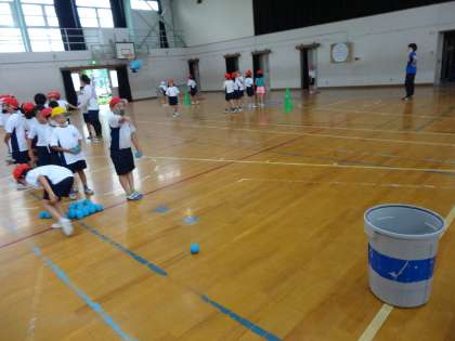 今日は雨だったので,体育館での学習した。