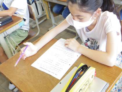 また,話すだけでなく,プリントを使って英語を書く活動も頑張っています!