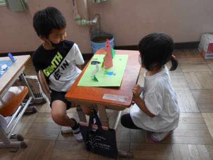 と,工夫して作ったところを話したり聞いたりすることができました。