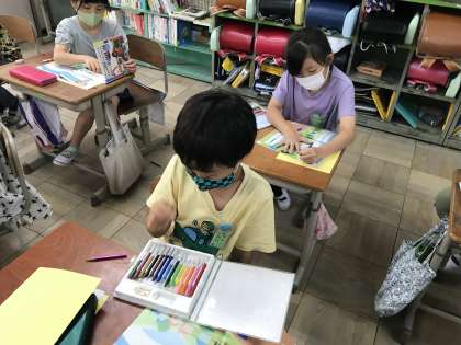 「orange, purple...」など,知っている範囲で伝える姿もあり,驚きです。