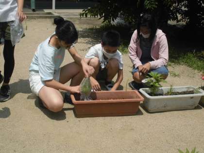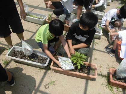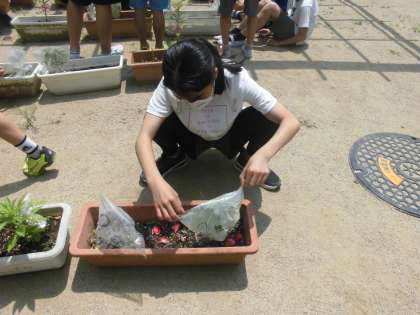 植物に袋をかぶせ,植物は酸素を吸って二酸化炭素を放出していることを確かめました!