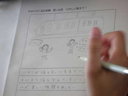 心に残った思い出を分かりやすく伝えるため丁寧に作業している姿が印象的でした。