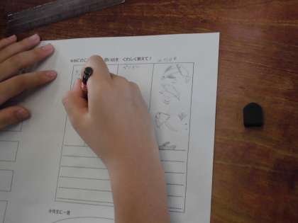 4年生は,夏休みの思い出をプリントにまとめていました。