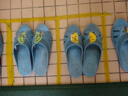 養護の坂元先生のおかげで,スリッパが並べやすくなりました。
