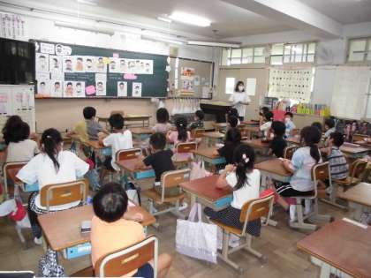 栄養教諭の岡本先生が「あさごはんをたべよう」という授業に来てくれました。