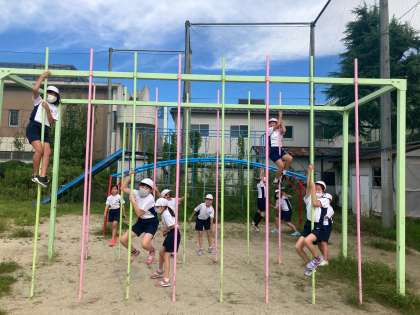 今日は天気が良かったので,運動場で鉄棒運動やなわとびをしました。