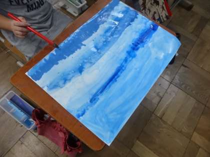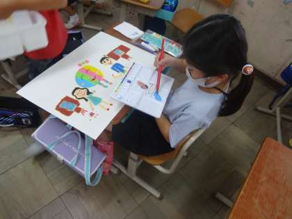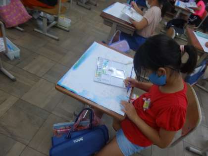 お話を読んで,続きや絵本には描かれていない場面を自分で想像する学習です。