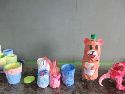 紙粘土に絵の具を混ぜて色を付け,思い思いの作品を作り上げることができました。