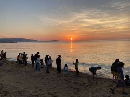 あまりの夕日の美しいので砂浜に足を伸ばしました。
