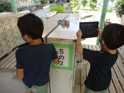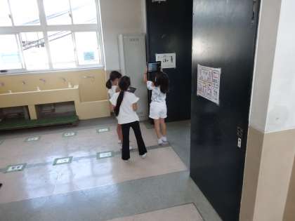今回は,学校中を探して顔に見えるものをタブレットで撮影し,先生に提出しました。次回,撮影した友だちを紹介する会を開きたいと考えています。