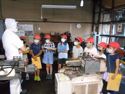 クラスごとに半分に分かれて工場内を見学させて頂きました。