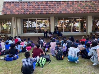 リーダーの司会のもと退館式が終わりました。これから大塚国際美術館に向かいます。
