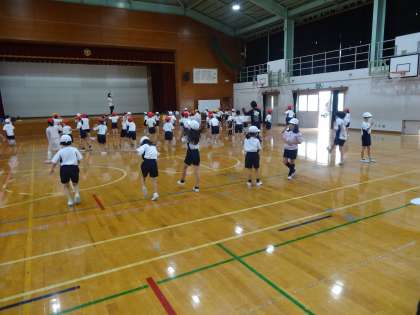 体育館で,集まり笑顔でダンスしました☆