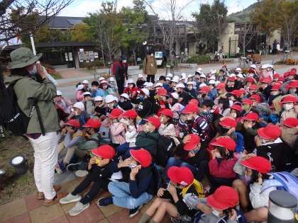 学校では,全員が一堂に集まらないので動物園での全体会です。