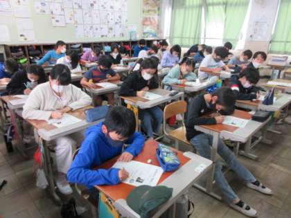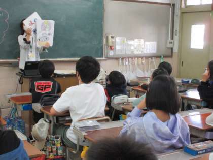 栄養教諭の岡本先生に「和食の良さを見直そう!」というめあてで授業をしていただきました。