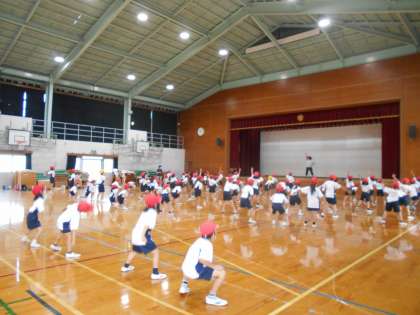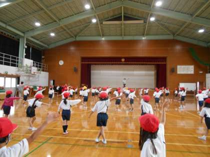ダンスを覚えて,腕をぐるぐる回したり,ピシッと指差しをしたり,曲に合わせて楽しく踊ることができました。