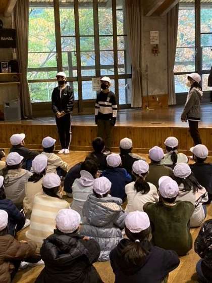 今度はオリエンテーションホールでリーダーを中心に山の家での決意表明がありました。子どもたちの「山の家頑張るぞー」の声が施設に響いていました。