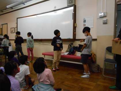 その後,自己紹介の方法を教えてもらったり,伝達ゲームやジェスチャーゲームをしました。