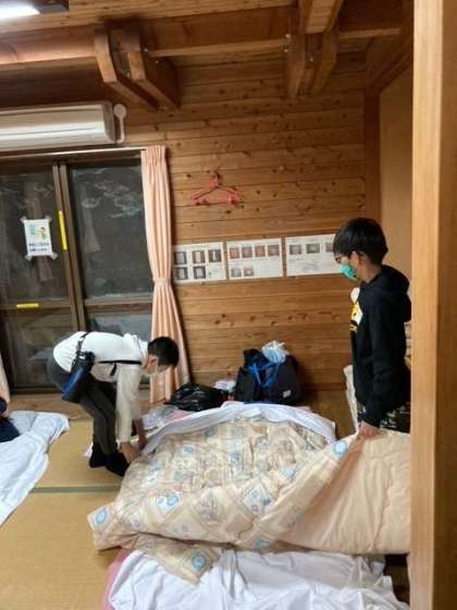 荷物整理をしたり、友達とおしゃべりしたり、協力してシーツを敷いたりとさまざまです。