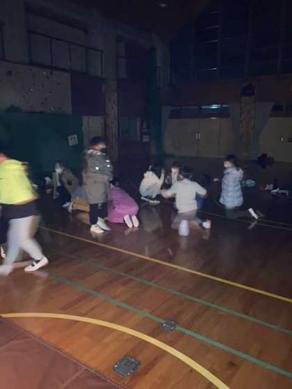 最初のレクリエーションは進化じゃんけんです。卵からスタートして勝てばひよこ、ニワトリと進化していきます。