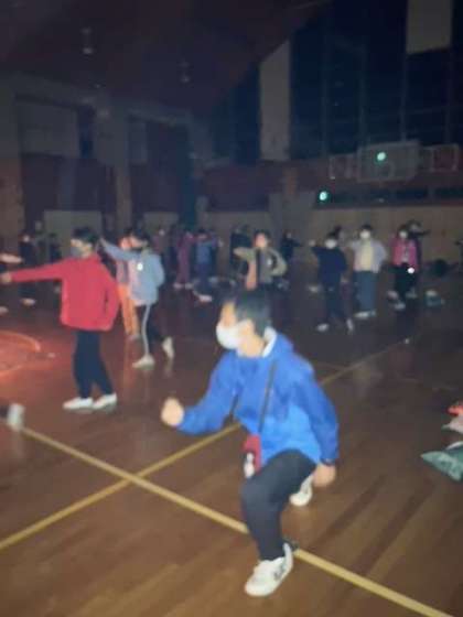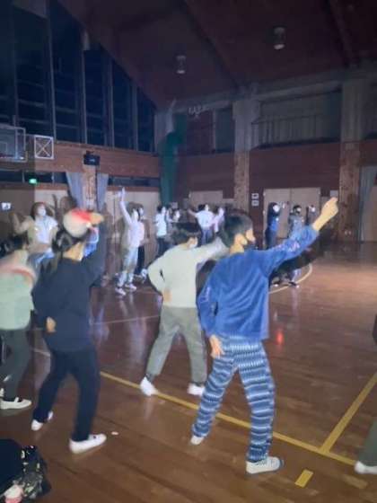最後はみんなでスポーツフェスティバルで踊るダンスを披露しました。引率の先生も一緒に踊ります。