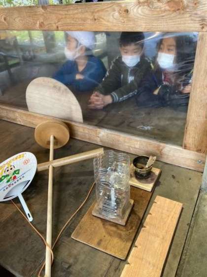 山の家の先生方の説明を聞きいよいよ挑戦です。道具も本格的です。