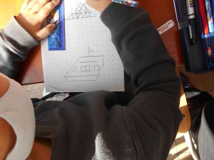 定規を使って,まっすぐな線を引いて,形を作りました。まっすぐな線を引くのは,少し難しそうな様子でしたが,顔を作ったり,船を作ったりといろいろな形を作ることができました。