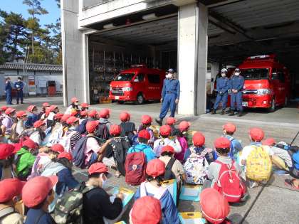 お話を聞いたり,消防署内の施設を見せて頂いたり,救命措置について教えて頂いたり,消火器の使い方を教えて頂いたり,たくさん学ぶことができ,とても楽しかったようです。