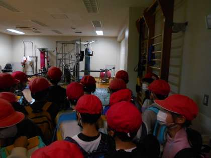 消防署内の事務所や食堂・仮眠室・体力錬成室(筋トレルーム)などなど様々な場所を見せて頂き,なぜ消防署内に食堂や仮眠室があるのかを教えてもらいました。